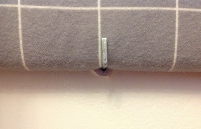 7. Mount board to wall with L shaped screws or nails. (Use screws and mollies if you are mounting onto drywall, nails for paneling or wood.) A helper is a must for this step :)
