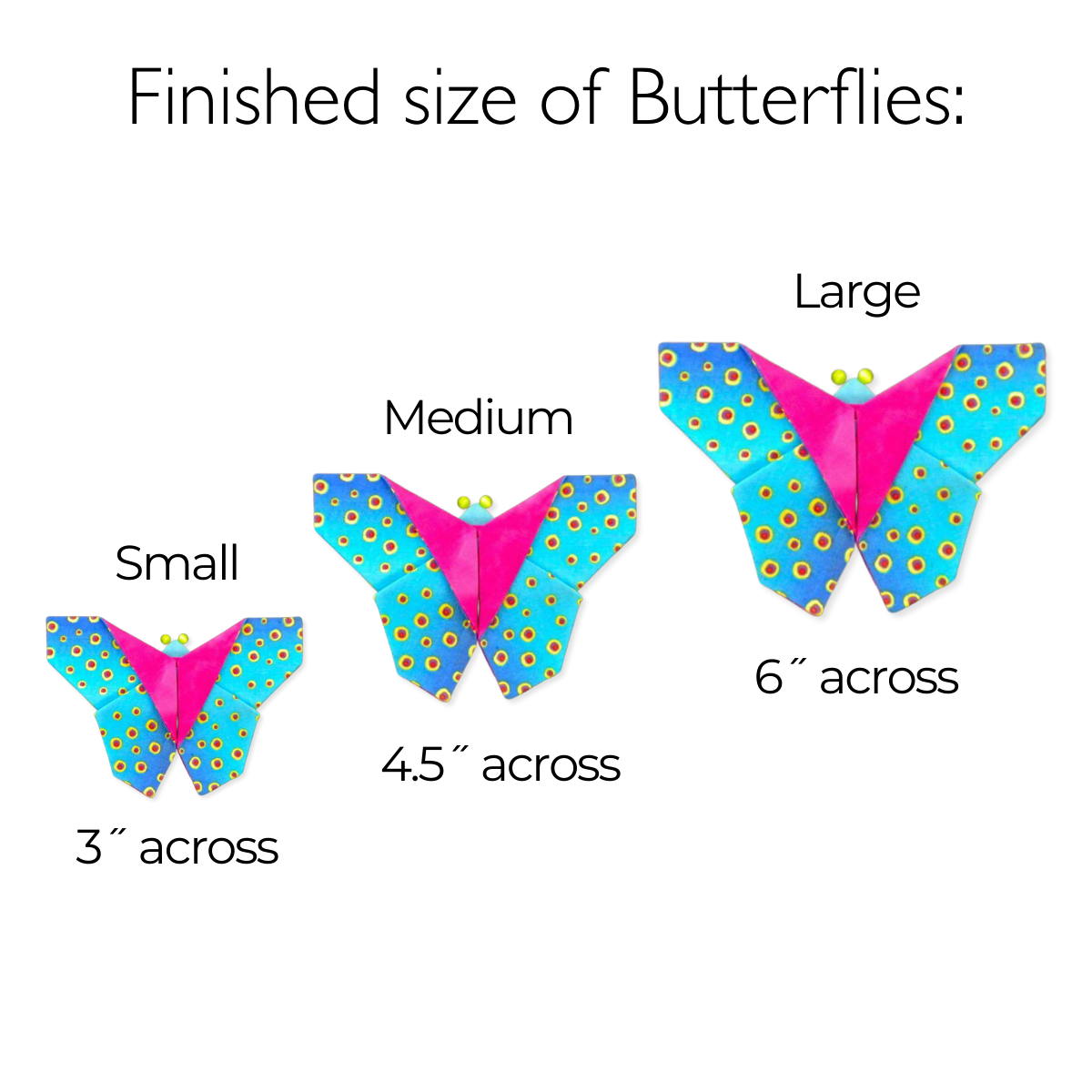 So quick to make- you can whip up a whole colorful swarm of fabric butterflies in an afternoon :) 3 sizes in pattern: 6", 4.5" and 3."