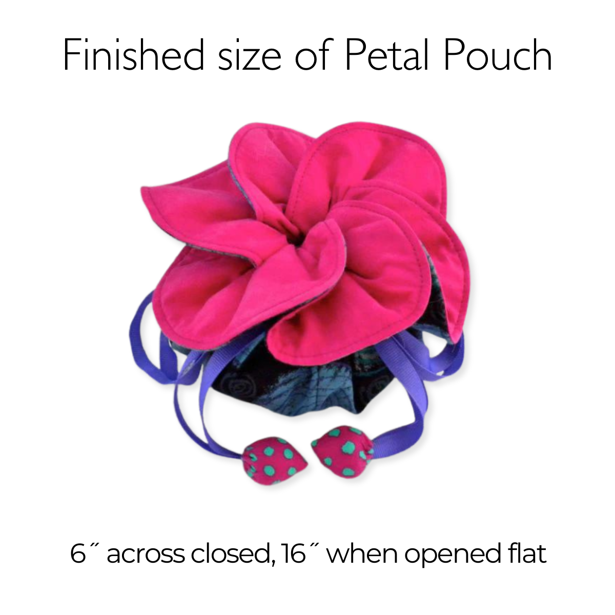 Keep all of your treasures in this flirty fabric drawstring pouch! Petal shaped pouch edges gather up into a swirly fabric flower bloom.
