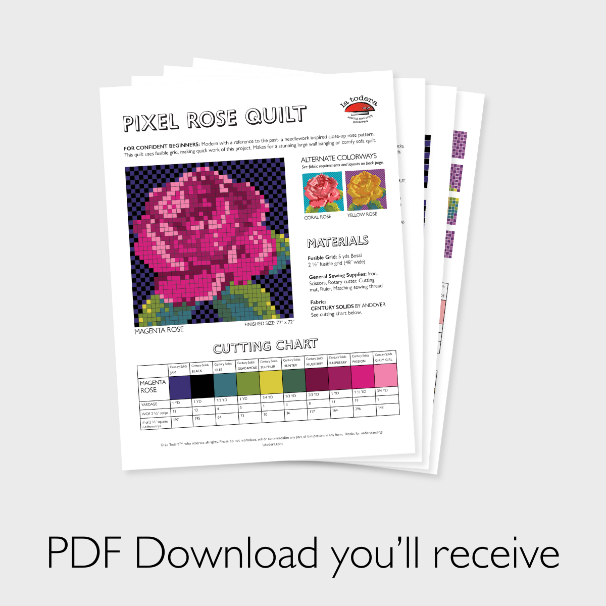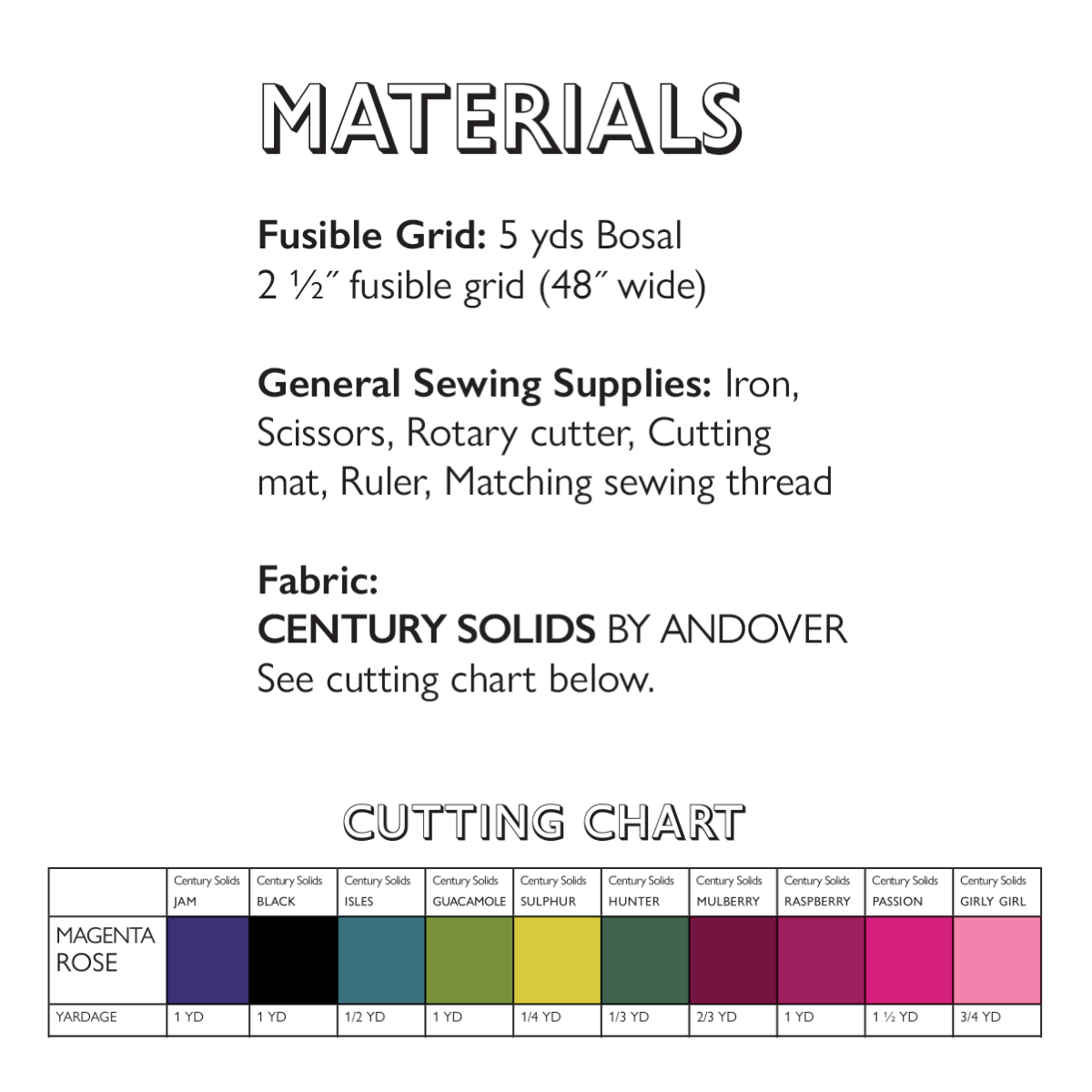 Modern with a reference to the past-a needlework inspired close-up rose pattern. This quilt uses Bosal’s Craft and Quilt 2 1/2 fusible grid, making quick work of this project. This grid is especially light and flexible- the finished quilt not only has perfectly matching seams, but is light and drapes beautifully! Finished size of 72˝ x 72˝ makes for a stunning large wall hanging or comfy sofa quilt.